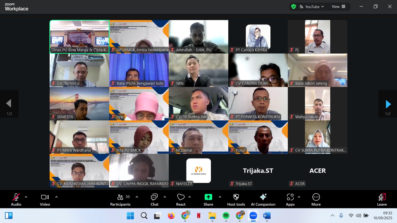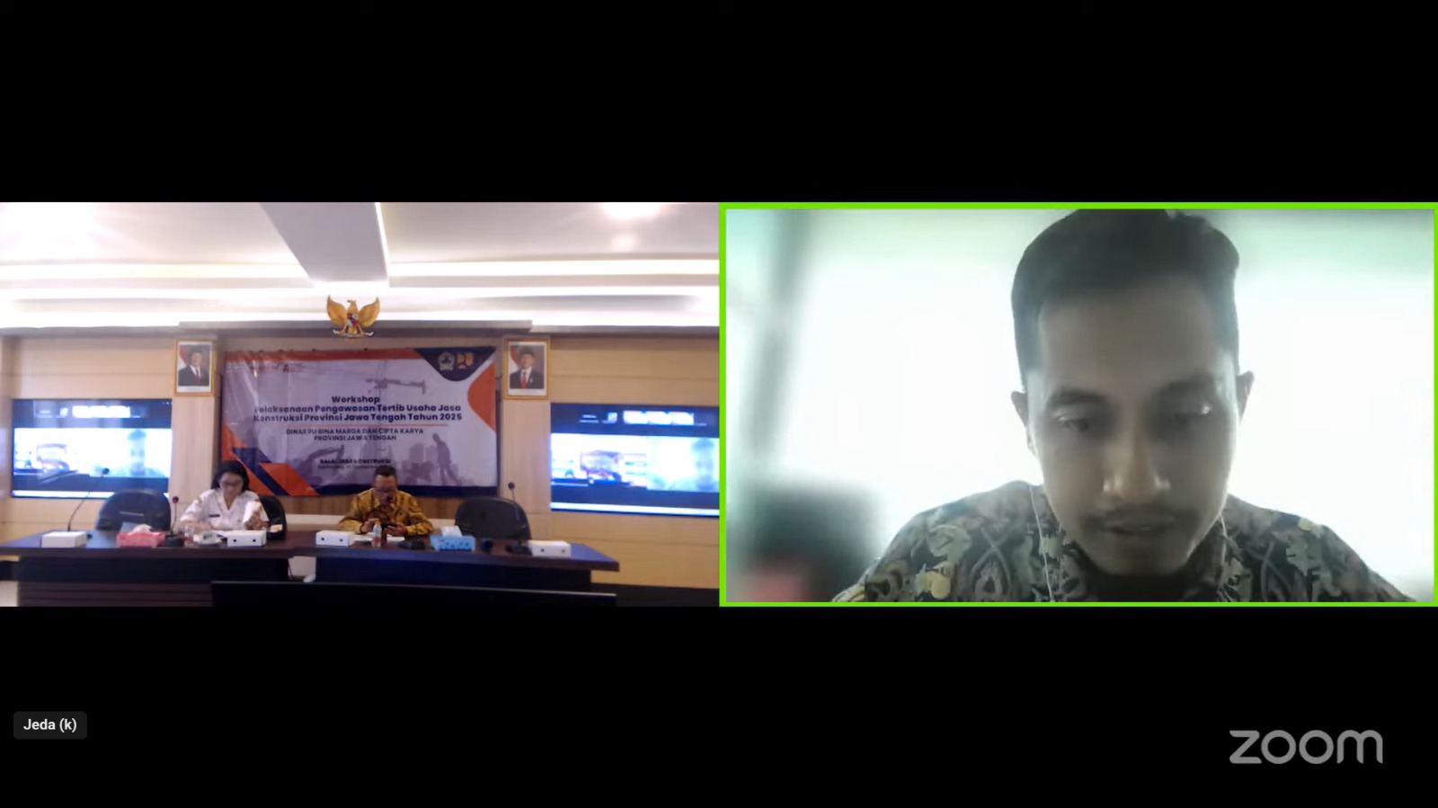 Workshop Pelaksanaan Pengawasan Tertib Usaha Jasa Konstruksi Provinsi Jawa Tengah Tahun 2025 ini dilaksanakan pada Rabu (10/09/2025) secara hybrid dan menghadirkan narasumber dari Direktorat Usaha dan Kelembagaan Jasa Konstruksi, Direktorat Jenderal Bina Konstruksi, Kementerian PUPR yaitu Akhmad Hady Amrullah, S.ST., M.T.. Acara ini dibuka oleh Kepala Dinas PU Bina Marga dan Cipta Karya Prov. Jawa Tengah yang diwakili oleh Kepala Balai Jasa Konstruksi. Beliau menyampaikan harapannya bahwa dengan adanya workshop ini dapat kompetensi dan daya saing badan usaha serta meningkatkan kualitas penyelenggaraan jasa konstruksi di Jawa Tengah. (bjk-amr)