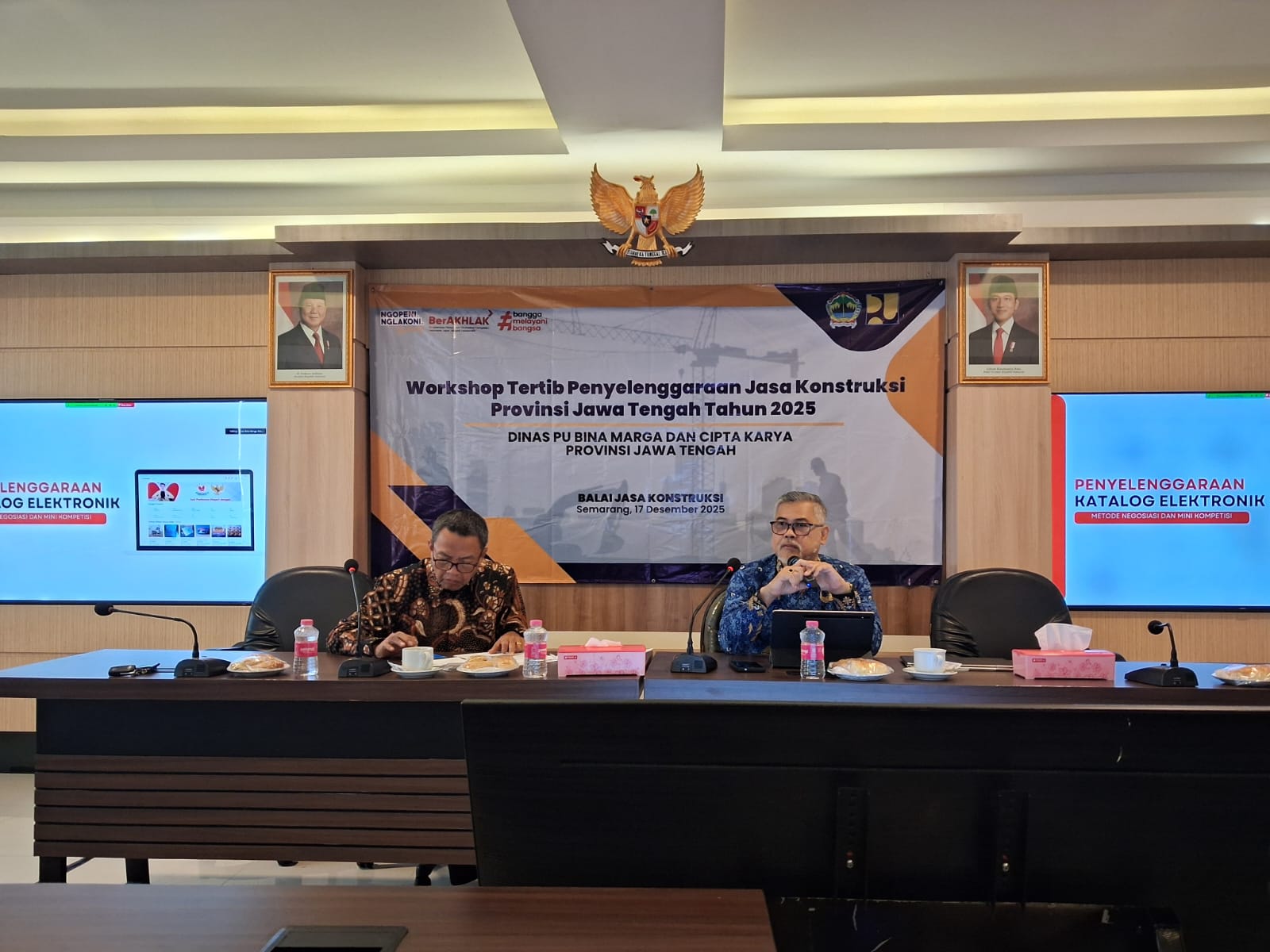 Oleh karena itu, dalam rangka mensosialisasikan terkait Pengadaan Barang/Jasa Sektor Konstruksi Metode Mini Kompetisi pada E- Katalog Versi 6.0. pada Rabu (17/12/2025), Dinas PU Bina Marga dan Cipta Karya Provinsi Jawa Tengah selaku Pembina Jasa Konstruksi tingkat Provinsi menyelenggarakan kegiatan Workshop Tertib Penyelenggaraan Jasa Konstruksi Provinsi Jawa Tengah Tahun 2025.